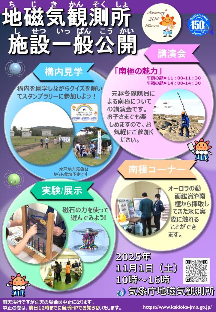 ※ 台風等悪天候により中止の際は、前日正午までに地磁気観測所ホームページにてお知らせします。