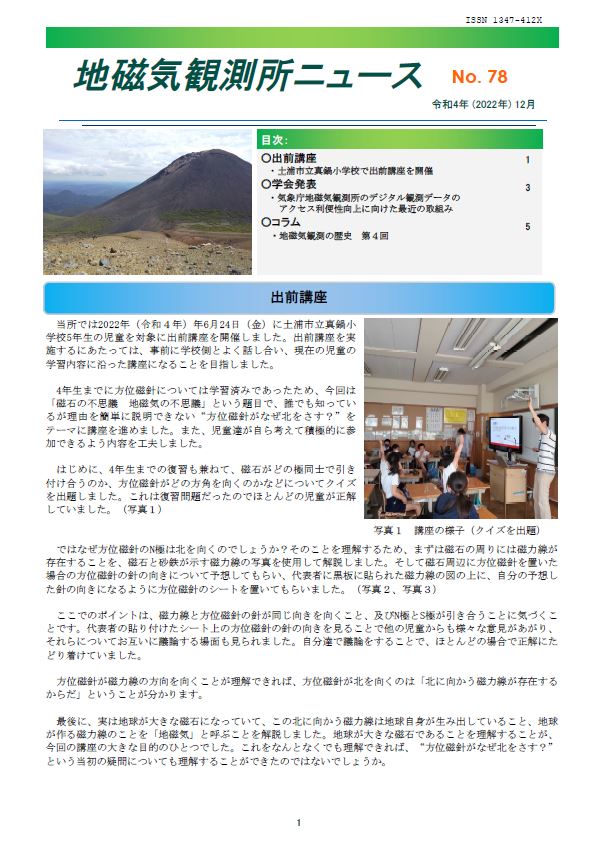地磁気観測所では、当所の最新のトピックスをお伝えするために、広報誌「地磁気観測所ニュース」を発行しています。